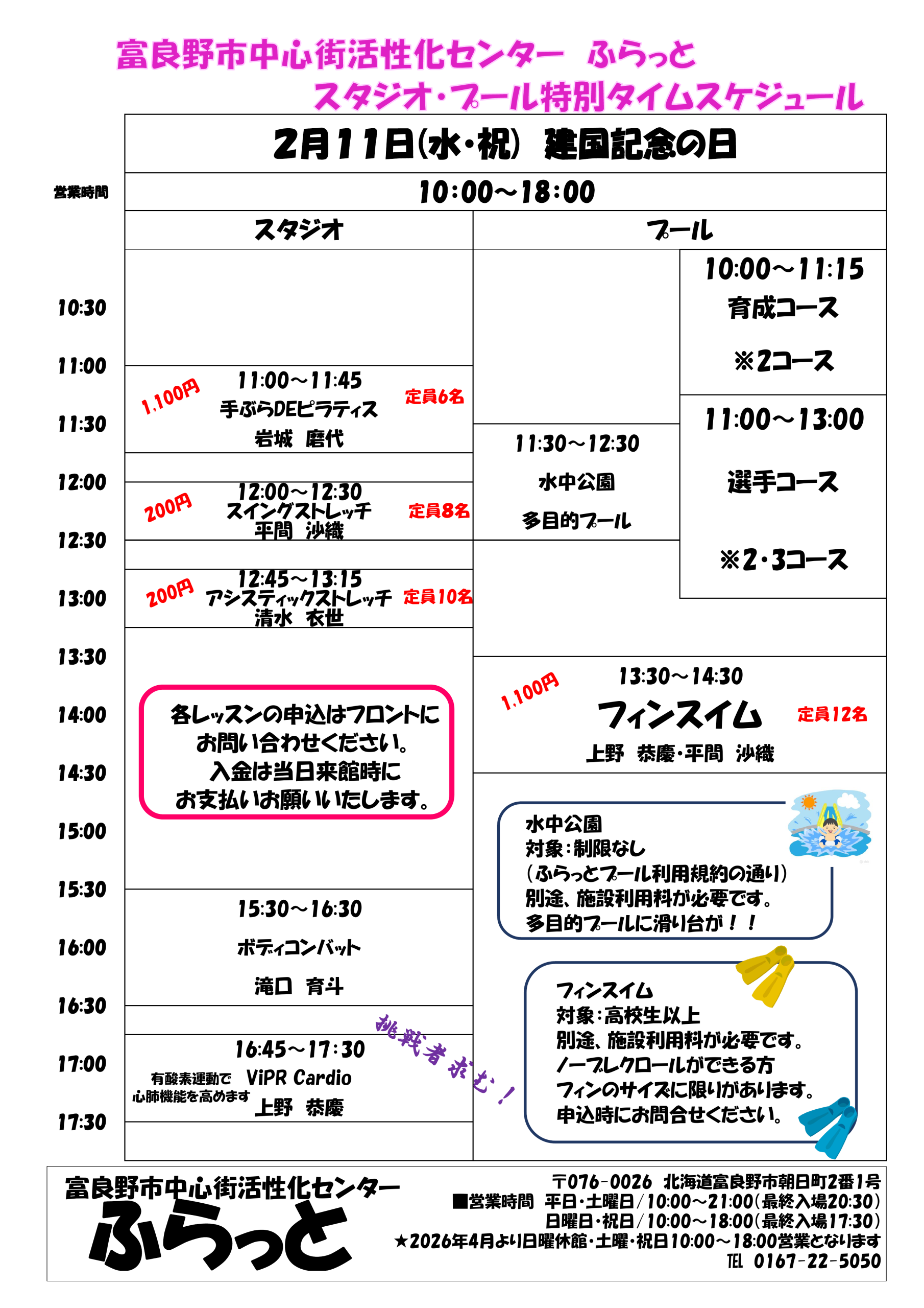 2月11日(水祝)特別タイムスケジュールのご案内
